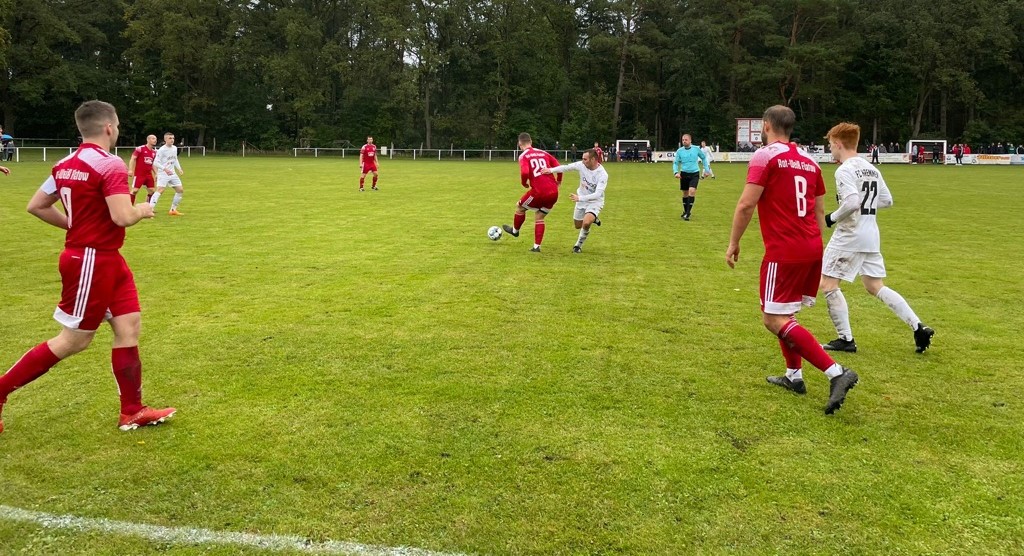 Endlich war es soweit. Nach einer langen Wartezeit fand nun wieder ein Ortsderby zwischen dem FC Kremmen 1920 e.V. und dem SV Rot-Weiß Flatow statt. Flatow startete mit einer gut organisierten Abwehr und dem Versuch durch lange Bälle ins Spiel zu finden. Kremmen reagierte in den Anfangsminuten etwas nervös aber nach 15 Minuten nahmen sie das Spiel dann an sich und boten sehenswerte Spielzüge mit häufigen Ballbesitz. Das es ein Derby war, merkte man an der Kartenverteilung, denn Flatow hatte bis zur 31 Spielminute schon vier gelbe Karten. Der Schiedsrichter Mohaupt und seine Assistenten hatten das Spiel gut im Griff. Beim Torabschluss fehlte es den Kremmenern dann leider am Quäntchen Glück. Mit einem 0 : 0 ging es in die Halbzeitpause. In der 2. Halbzeit blieben die Kremmener dann im Ballbesitz. Patrick Breyer gelang in der 59′ Minute mit einem Seitfallzieher das 0 : 1. Kremmen wechselte Marc Kaiser, Philipp Pfaff und Oliver Baese ein. In der 85′ Minute erzielte der beste Spieler, Lukas Kraeft, das 0 : 2 mit einem sehenswerten Kopfball. Der Jubel bei den Kremmenern war riesig. Lucas Penther und Marten Bach durften zum Schluss dann auch noch ran.