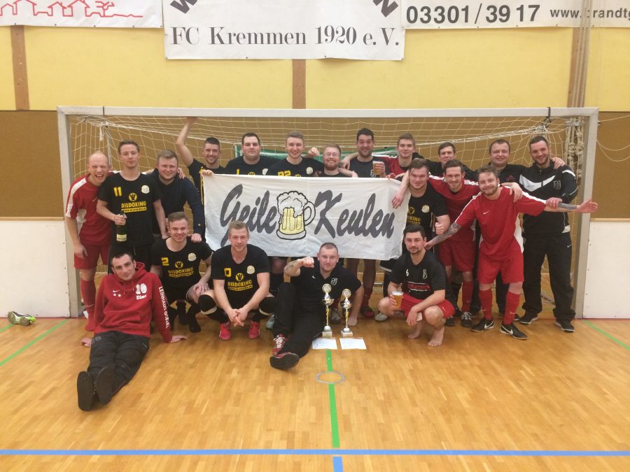 Dass es nach fast 20 Jahren Hallenserie in Kremmen auch noch Premieren zu feiern gibt, dafür sorgte am Nachmittag beim Sponsorenturnier die Firma Lidl, die erstmals den Siegerpott ergatterte. Und das mit einem souveränen 6:3 im Finale gegen Nopper Netzmontagen, dass in dieser Konstellation so auch noch nicht stattfand. Gespickt mit gestandenen Fußballern wie Marc Kaiser, Tim Schuldig, Patrick Mann, Florian Wille und Enrico Pfefferle, fegte Lidl durch die Vorrunde und erhob damit nachdrücklich Anspruch auf den Sieg. Nopper Netzmontagen waren hingegen die Überraschung des Abends. Nachdem sie aufgrund von Personalmangel kurzfristig fast absagen mussten, half die Reserve des FC Kremmen schnell mit Spielern aus. Im Schatten der Favoriten wie Pudes Eck oder Sana Kliniken schoben sie sich bis ins Endspiel vor. Den dritten Platz belegte Titelverteidiger Sana Kliniken, die dem Vorstand des FCK im Vorfeld des Turniers einen nagelneuen Arztkoffer spendierten. Vielen Dank dafür!